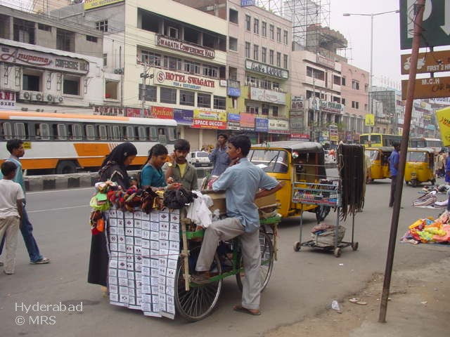 Southeast Coast of India. It is India's fourth largest state by area (275,045km2) and fifth largest by population (76.5 Mio). Its capital and largest city by population is Hyderabad. The State has the second-longest coastline of 972 km among all the States in India. Andhra Pradesh is bordered by Maharashtra, Chhattisgarh and Orissa in the north, the Bay of Bengal in the East, Tamil Nadu to the south and Karnataka to the west. Two major rivers, the Godavari and the Krishna, run across the state. The small enclave (30km2) of Yanam, a district of Pondicherry, lies in the Godavari Delta in the northeast of the state. The photos in this section were taken in Hyderabad.