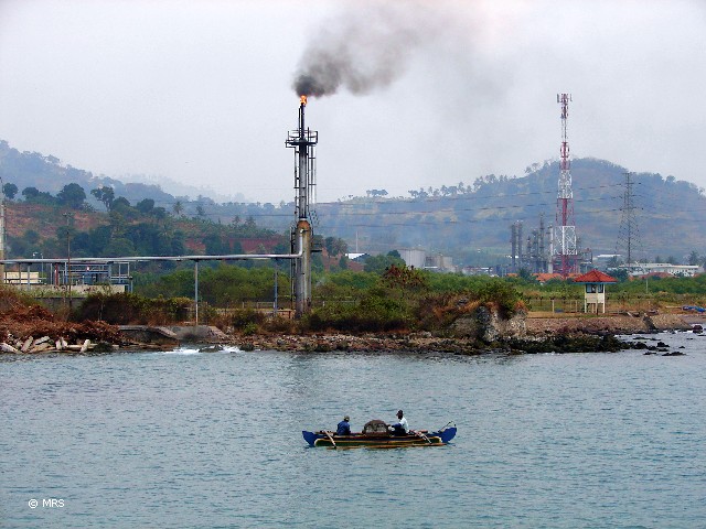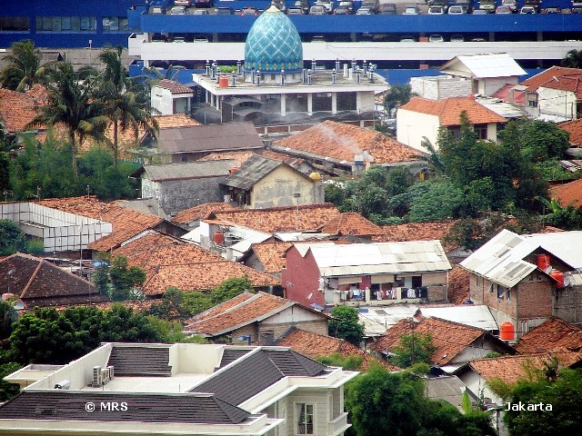Java is the world's 13th largest island (132,000 km2), , world's most populous island (136 million), and one of the most densely populated regions in the world (1,029/km2). The island is divided into four provinces, West Java, Central Java, East Java, Banten and two special districts, Jakarta and Yogyakarta. The Java island is home to 60% of Indonesia's population. Java Island is located between Sumatra Island to the west and Bali Island to the east. Borneo Island lies to the north and Christmas Island to the south. It is surrounded by Java Sea in the north, Sunda Strait in the west, Indian Ocean in the south and Bali & Madura Strait in the east. The photographs in this section were taken in Jakarta, East-, West- and Central- Java.